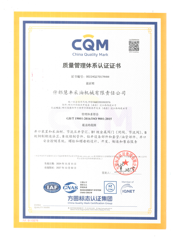 质量管理体系认证证书